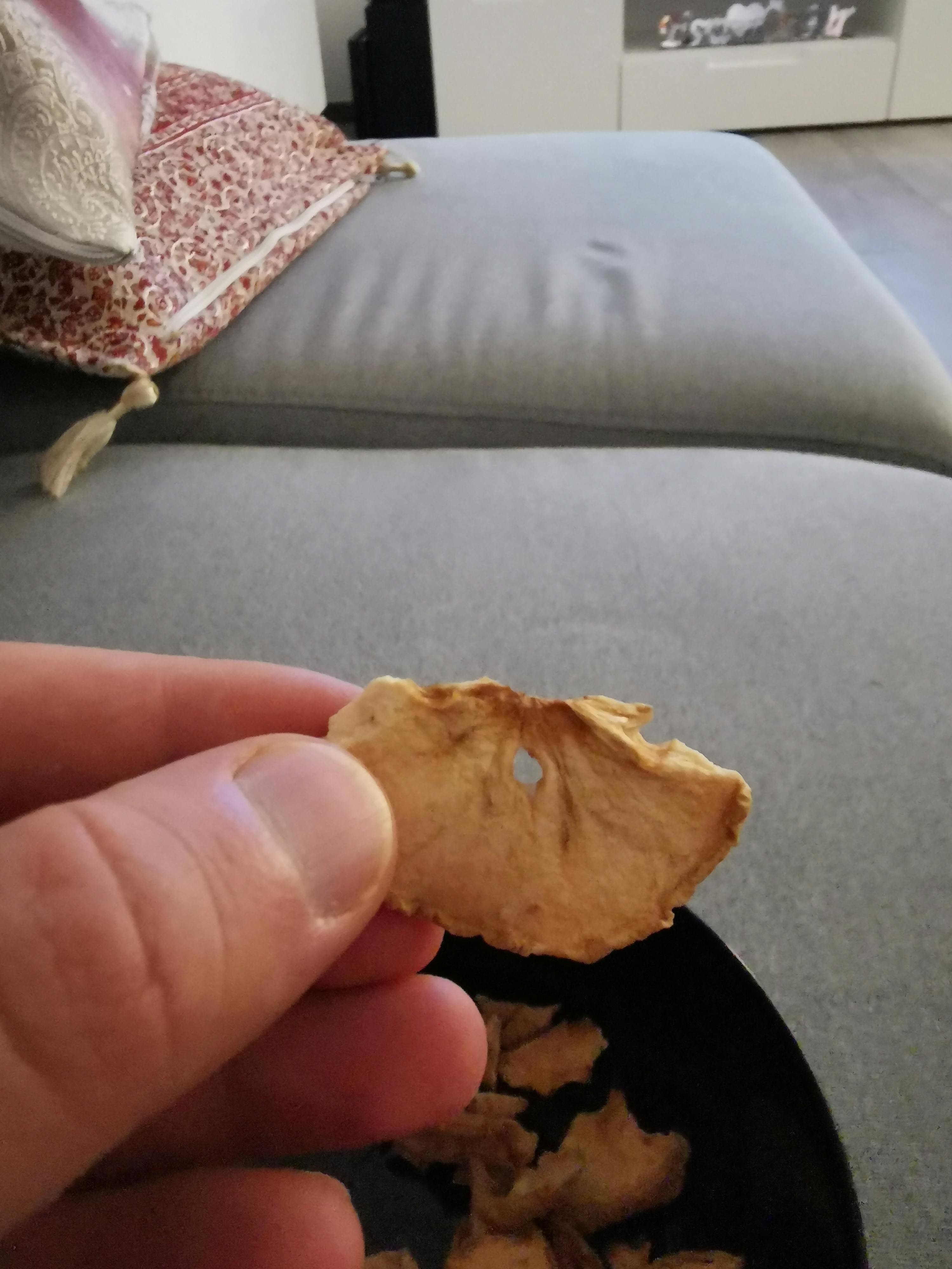 Merci d'avoir pris le temps de nous faire part de tes commentaires sincères. 🧡 Il est dommage que les chips de pomme ne soient pas tout à fait à ton goût. Nous prenons en tout cas note de ton feedback et le transmettons à l'équipe produit. 🤓